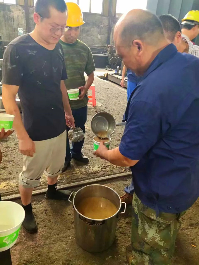 在公司高層領(lǐng)導(dǎo)的統(tǒng)籌下,食堂工作人員5點(diǎn)鐘就開(kāi)始熬制綠豆稀飯,每天下午3點(diǎn)半左右馬煉、黃波、肖贊等人給車間送綠豆稀飯、藿香正氣液、藿香正氣丸等防暑降溫用品(沒(méi)煮稀飯的這天就發(fā)放冰西瓜),希望能在炎熱的盛夏把清涼送到生產(chǎn)車間,把關(guān)懷送到員工的心坎。