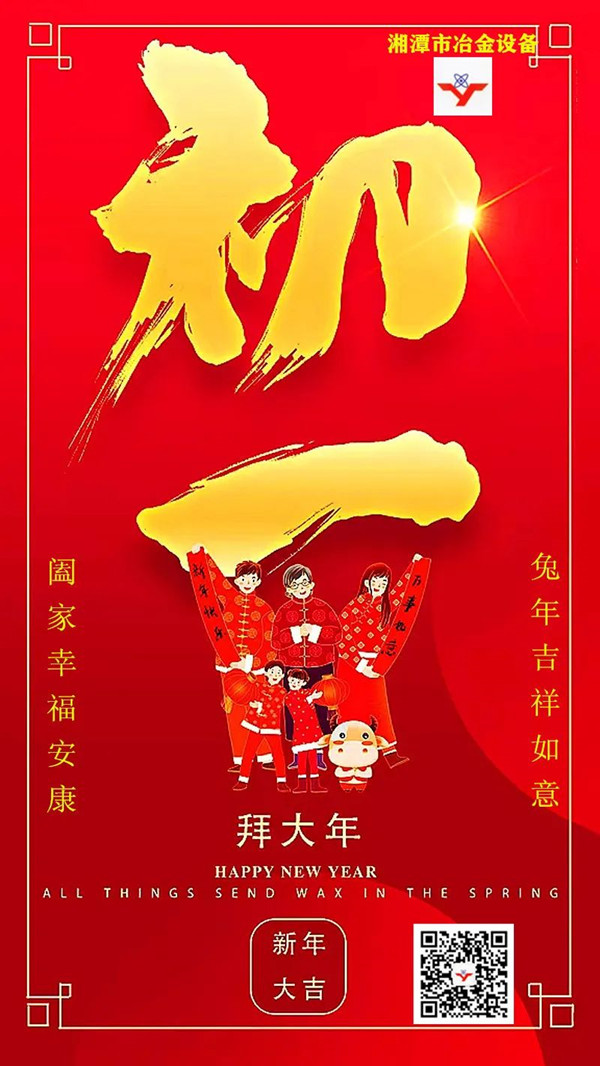 金虎呈歡辭舊歲,福兔躍起迎新春。 湘潭市冶金設(shè)備發(fā)展、成長(zhǎng)的每一步,都凝聚了各位客戶(hù)、合作伙伴和各界朋友的關(guān)懷、信賴(lài)與支持,以及全體湘冶家人的辛勤耕耘與打拼。充滿(mǎn)機(jī)遇與挑戰(zhàn)的2023,我們將信心滿(mǎn)懷,堅(jiān)守初心,沿著既定的宏偉目標(biāo),再譜新篇章。 值此兔年春節(jié)到來(lái)之際,國(guó)內(nèi)冶金礦山設(shè)備非標(biāo)定制專(zhuān)家——湘潭市冶金設(shè)備制造有限公司恭祝大家:春節(jié)團(tuán)圓美滿(mǎn)!闔家幸福安康!在大展鴻兔、兔飛猛進(jìn)的2023年里,好運(yùn)常在!笑口常開(kāi)!開(kāi)心每一秒,快 樂(lè)每一天,幸福連連,健康久久!