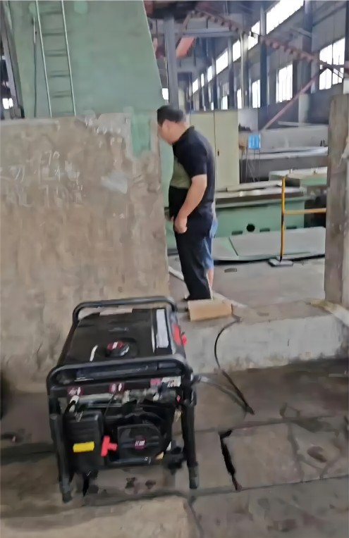 9點左右,車間突發(fā)停電,設備面臨被水浸的危險。劉美林總經理果斷決策,采購發(fā)電機和配件,搶險團隊安裝調試后及時抽出立車地下水。因一臺不夠,喻斌也冒雨采購了一臺大功率發(fā)電機,為搶險工作提供了有力支持。