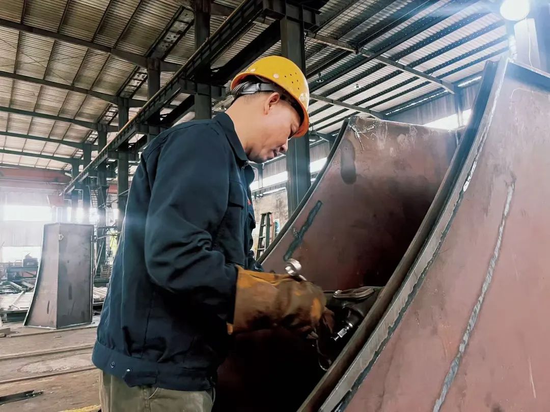 楊襲曾是泰富重工的“一周一打卡”自由職業(yè)者。在行業(yè)寒冬的沖擊下,泰富為了降低成本,不得不采取靈活的用工模式,楊襲在外出尋找工作的過程中,機(jī)緣巧合之下,最終加入了湘冶。盡管他的身份是勞務(wù)關(guān)系,但這從未限制他的擔(dān)當(dāng)。他憑借精湛的鉚焊技術(shù),成立了這個充滿活力的班組。在越南滾軸篩項(xiàng)目中,楊襲憑借其過硬的鉚焊技術(shù),解決了精密焊接中的難題,通過精準(zhǔn)的電流參數(shù)設(shè)置和獨(dú)特的鉚焊手法,確保了鉚焊質(zhì)量,為項(xiàng)目的順利交付立下汗馬功勞。他不僅技術(shù)過硬,而且工作態(tài)度認(rèn)真負(fù)責(zé),為班組奠定了堅(jiān)實(shí)的基礎(chǔ)。盡管他并非全職員工,但他對工作的投入和專注,讓他在車間里贏得了極高的聲譽(yù)。他深知,只有以身作則,才能帶領(lǐng)班組走向成功。他用自己的行動詮釋著什么是敬業(yè)精神,什么是團(tuán)隊(duì)的凝聚力。
